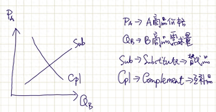 “替代品”(substitute)和“互补品”(complement)是经济学中出现频率非常高的两个词,在解释这两个词的含义之前,我们先了解另一个概念“交叉价格需求弹性”(cross-price elasticity of demand):