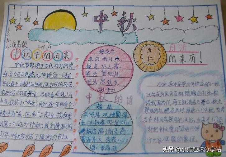 那么,在这么美好的节日里,肯定少不了得画上一幅漂亮精美的小画,来记录下你的所见所闻所感啦。看,小语老师已经为大家准备好了这么多中秋节主题的手抄报,来供大家参考。快跟我一起看一看吧!