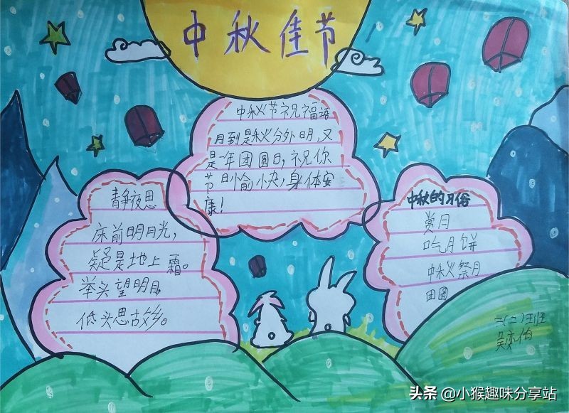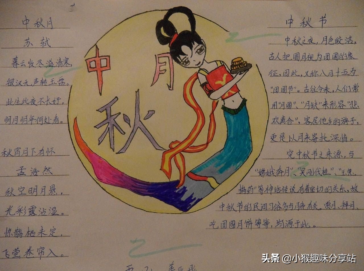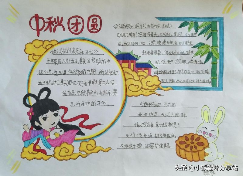 中秋节主题手抄报,简单又好看,看完就会画