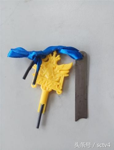 记者看到,打火石就是一根小细棍,它被包装成了玩具兵器的样子,另外还附带了一个刀片。但外包装上既没有厂家厂址,也没有产品说明等信息。