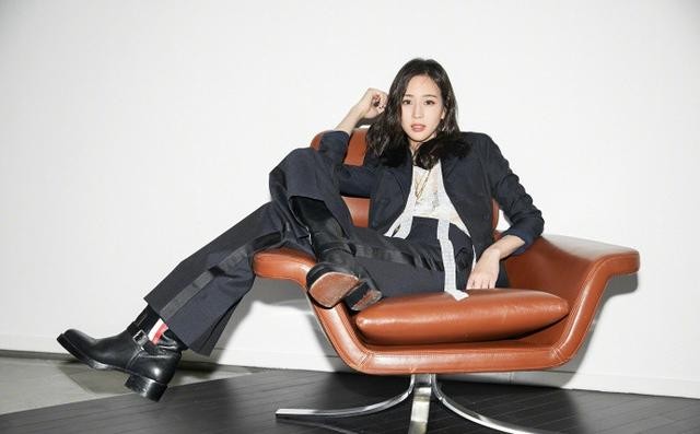 张均甯身穿一身深蓝色的西服套装,内搭透纱材质衬衫,而且还戴有项链作为修饰,看起来也不繁琐,反而更加吸引人。她霸气的坐在椅子上,翘着二郎腿的姿势,很有霸道总裁的范,格外的帅气,而且她的眼神也是炯炯有神,非常到位,很是惊艳哦。
