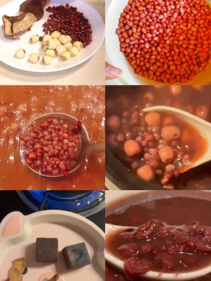 用料:红豆200g莲子适量新陈皮1块老红糖2块