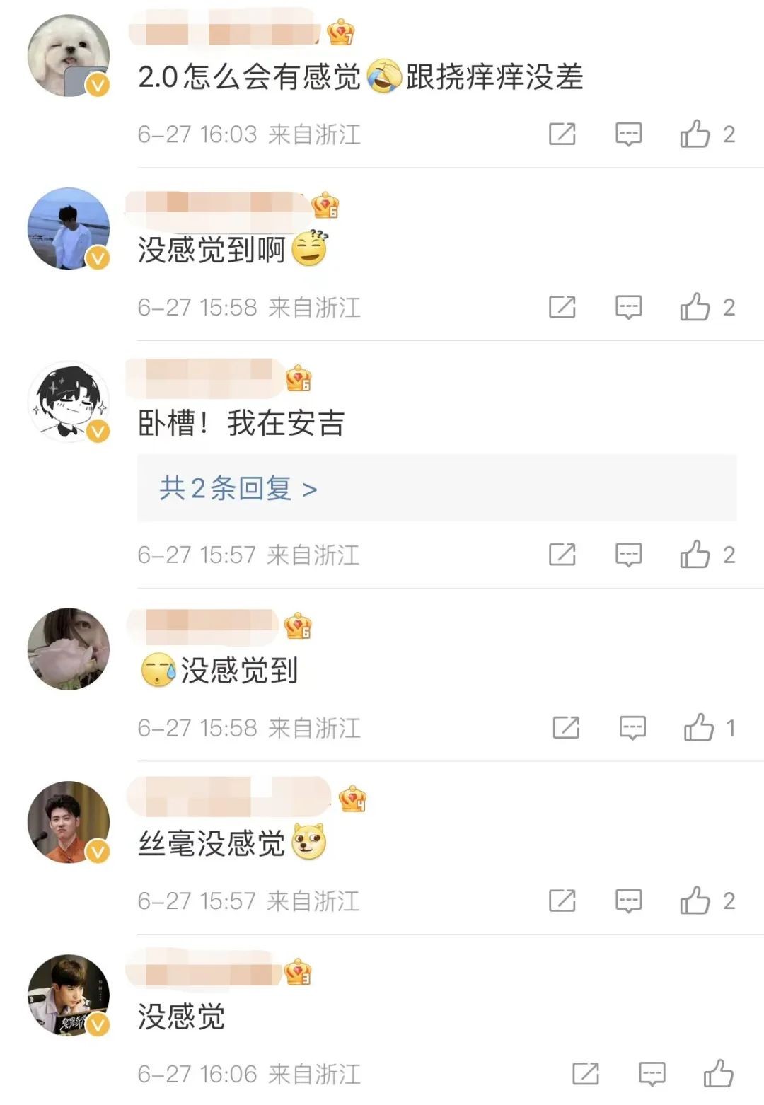 很快,网友们议论开了有人说完全没感觉