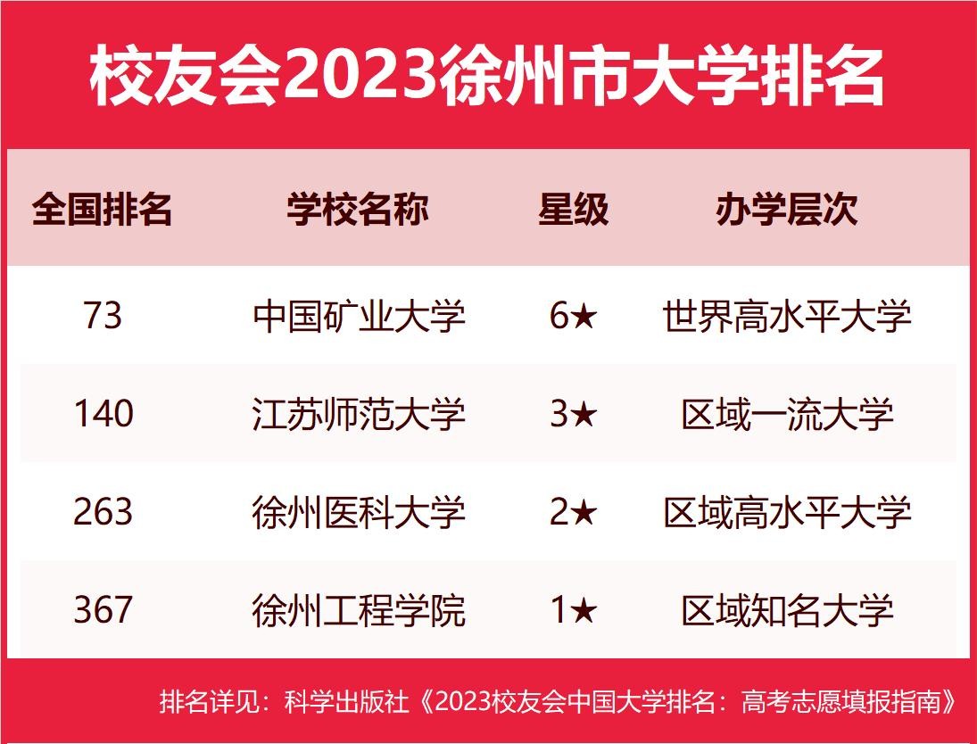 2023徐州市大学排名,江苏师范大学第二、徐州工程学院第四