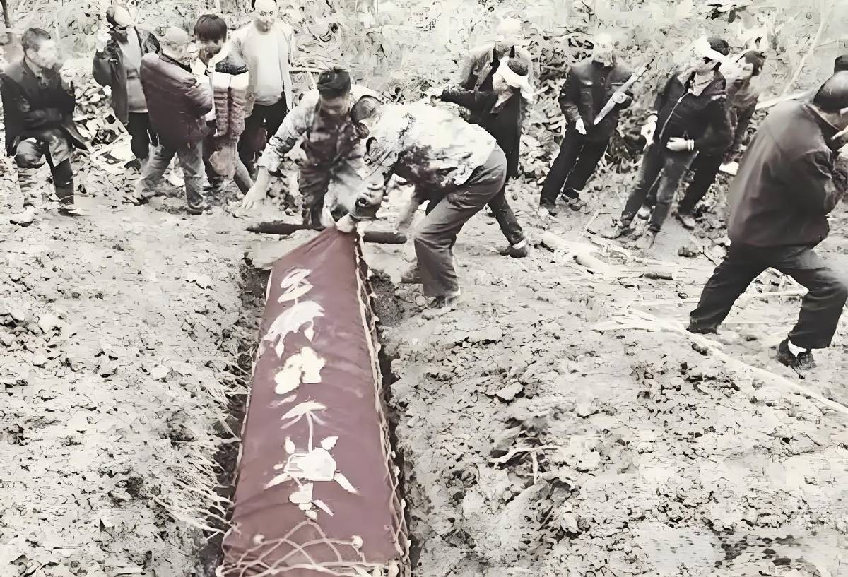1994年某天,几个工人正汗流浃背地挖土,突然“哐当”一声,好家伙,竟然挖出了透着邪气的八副棺材!