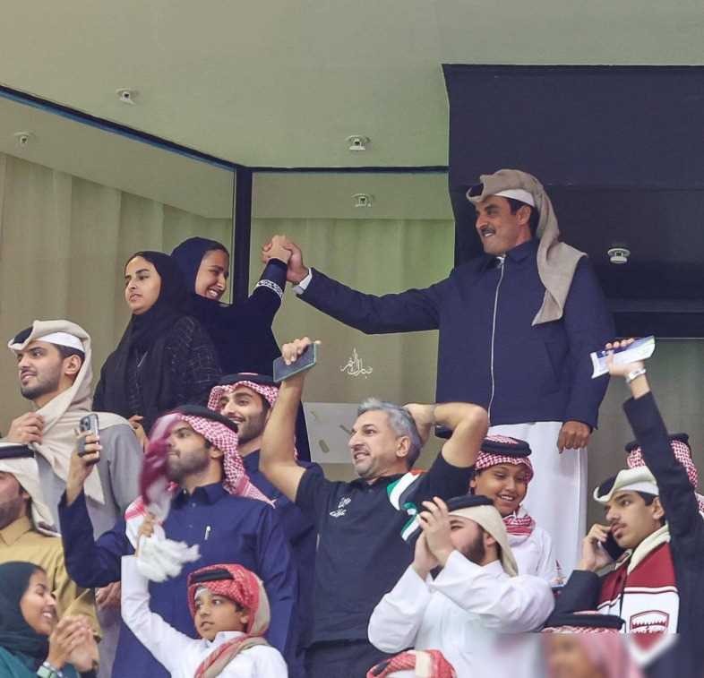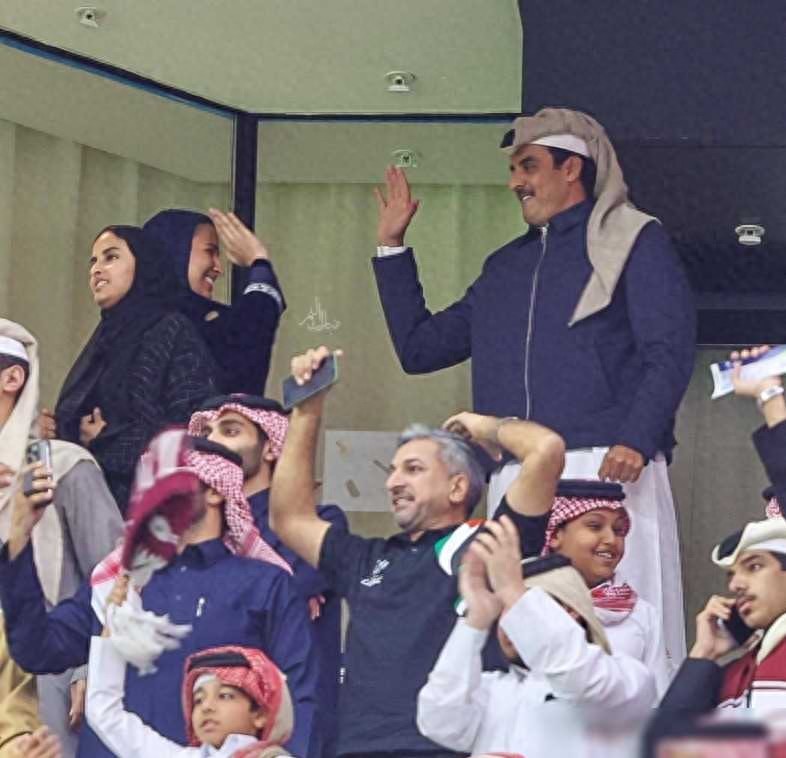 这次亚洲杯上,玛雅莎公主的妹妹也显得更为自由,不穿传统黑袍,也没有包头,站在国王塔米姆身边,一身现代装。这或许暗示着,王室成员在国际场合更加自由一些,不受传统风俗的过度束缚。