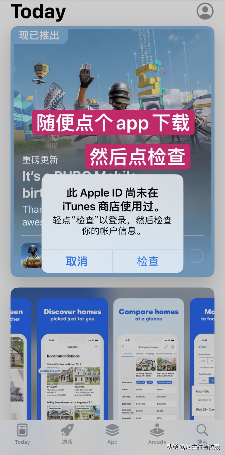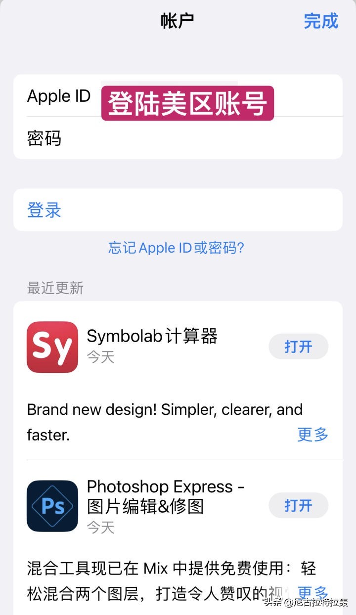 四、不用在设置里登陆美区Apple ID,这样比较麻烦,云备份的照片什么的还得恢复半天,直接打开app store,点头像,拉到底部,点击退出,然后输入账号密码登录美区ID,然后随便选个app下载,然后点击检查,勾选同意条款,点下一页。