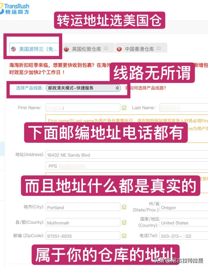 3、本人有五六年的海淘经验,所以直接用了转运公司的地址,没有账号的提前注册一个有美国仓的转运公司的账号,也可以用美国地址生成器代替。