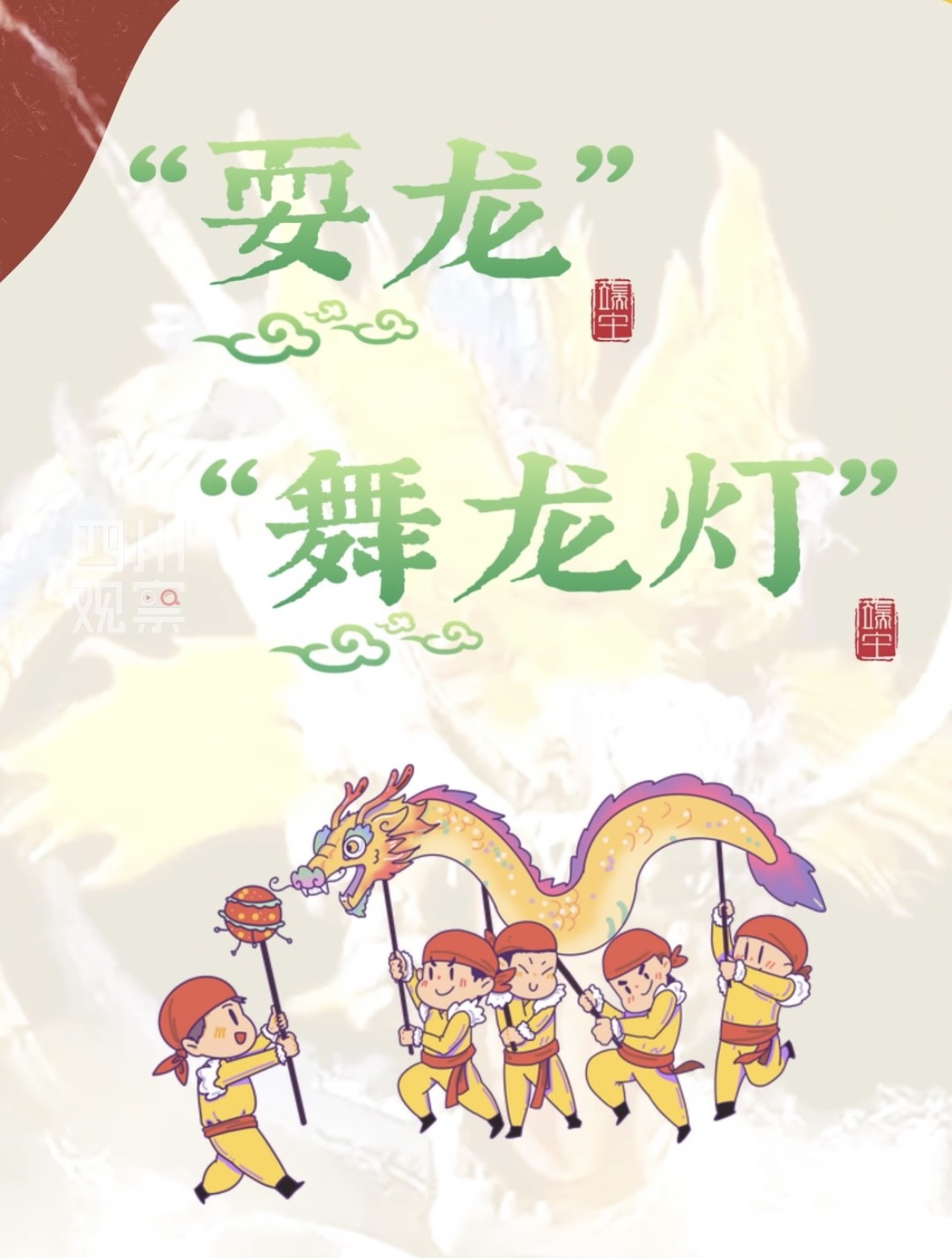 既然是水龙节,首先得有龙。舞龙,又叫“耍龙”“舞龙灯”,据记载,“湖广填四川”移民浪潮滚滚而来时,舞龙随江西刘氏扎根洛带。