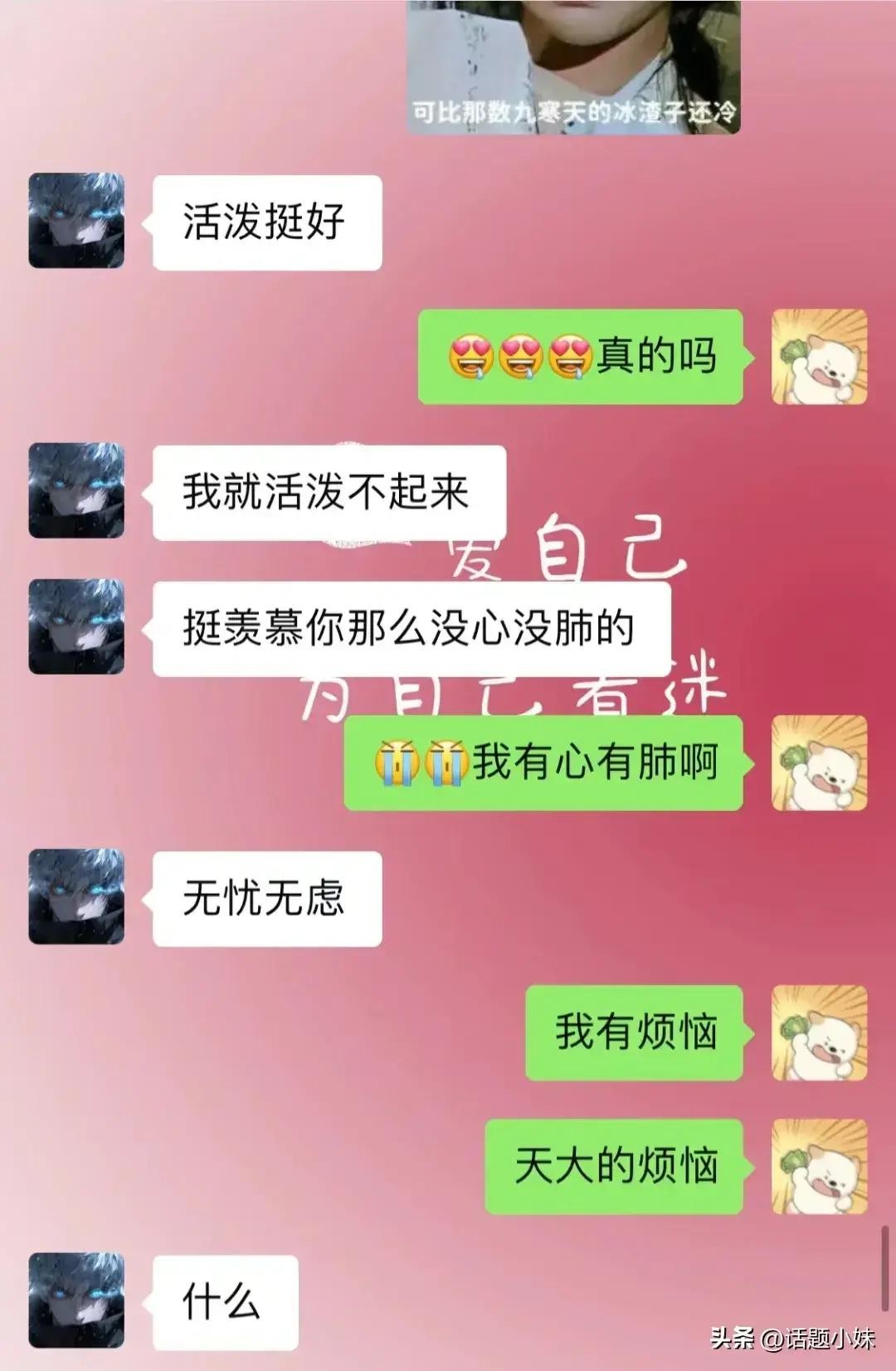 男生:“哈哈,谢谢你的夸奖。我也觉得和你聊天很开心。”