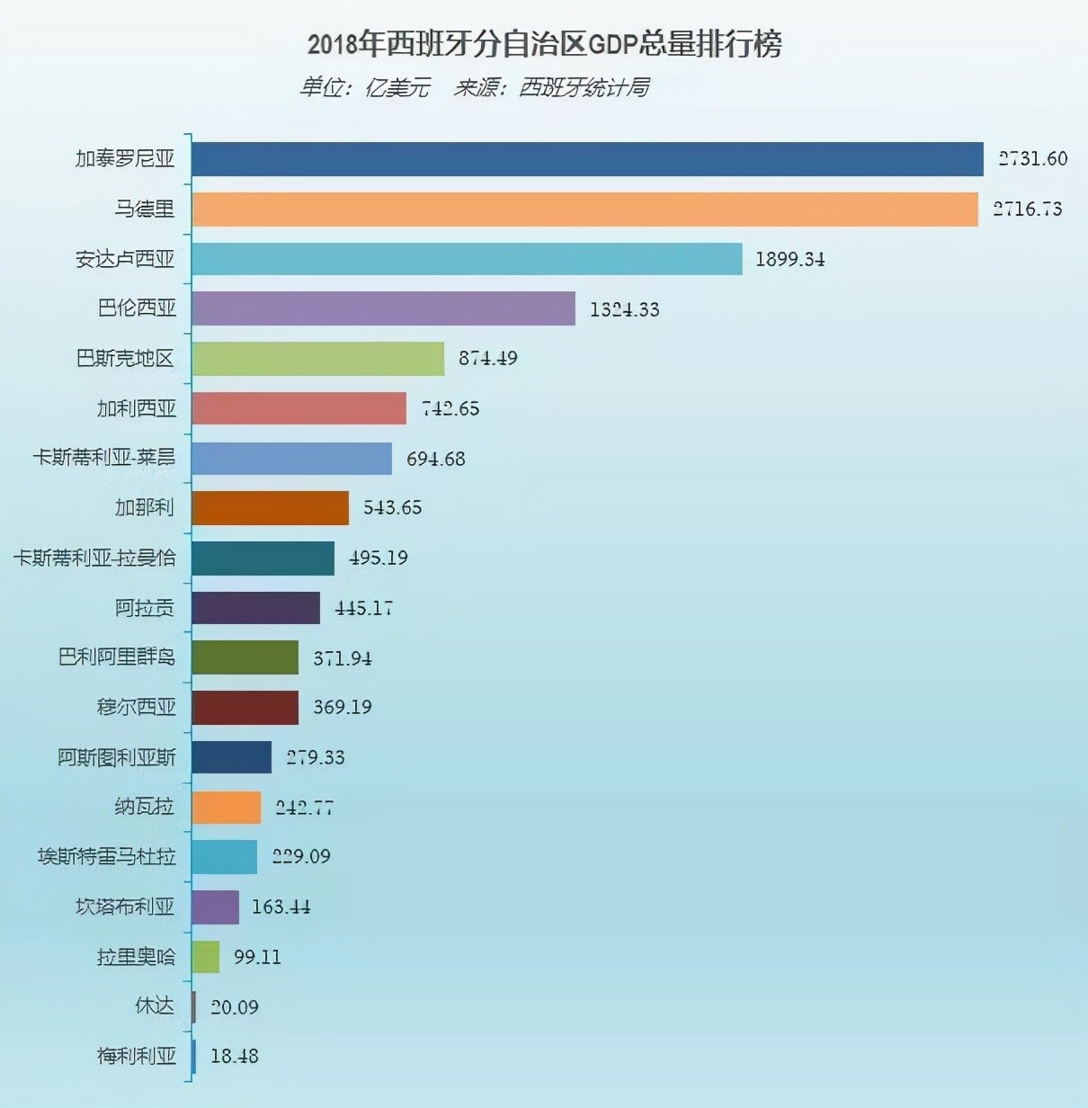 2018年加泰罗尼亚自治区GDP名列榜首
