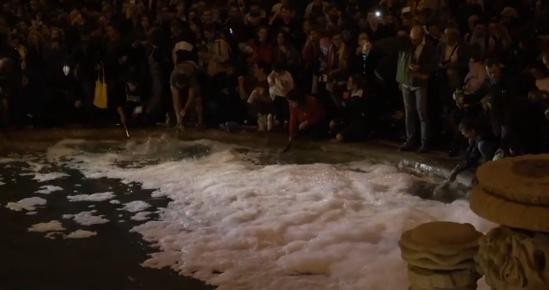 而且他们的加泰罗尼亚领导人就算被抓,他们的反抗方式也是去市中心的一个喷泉,然后往里面倒洗涤灵。在城中弄出许多泡泡去引起国际的重视(真是文明)。