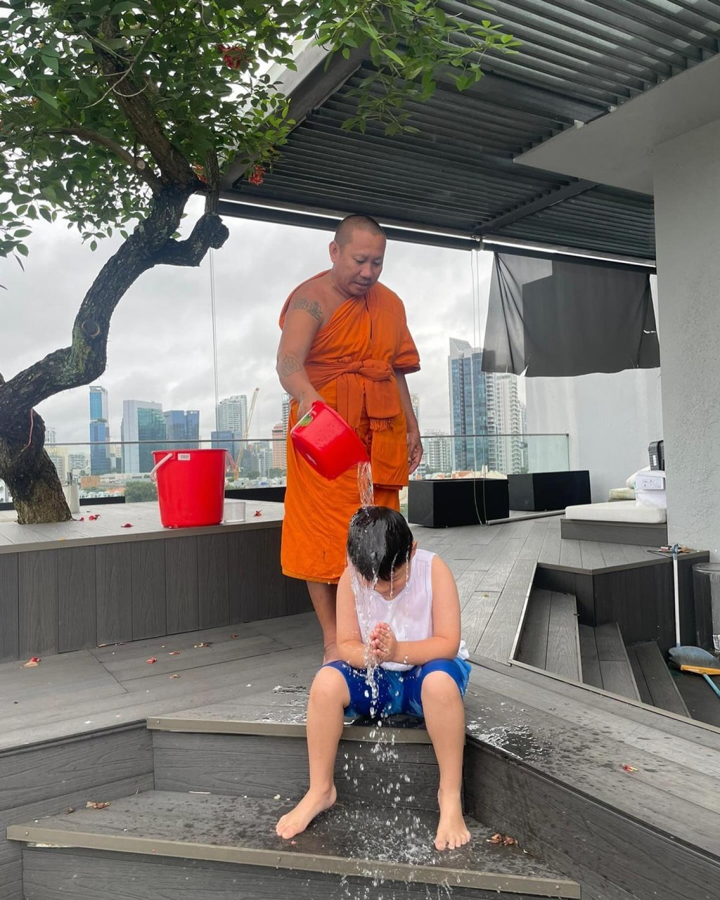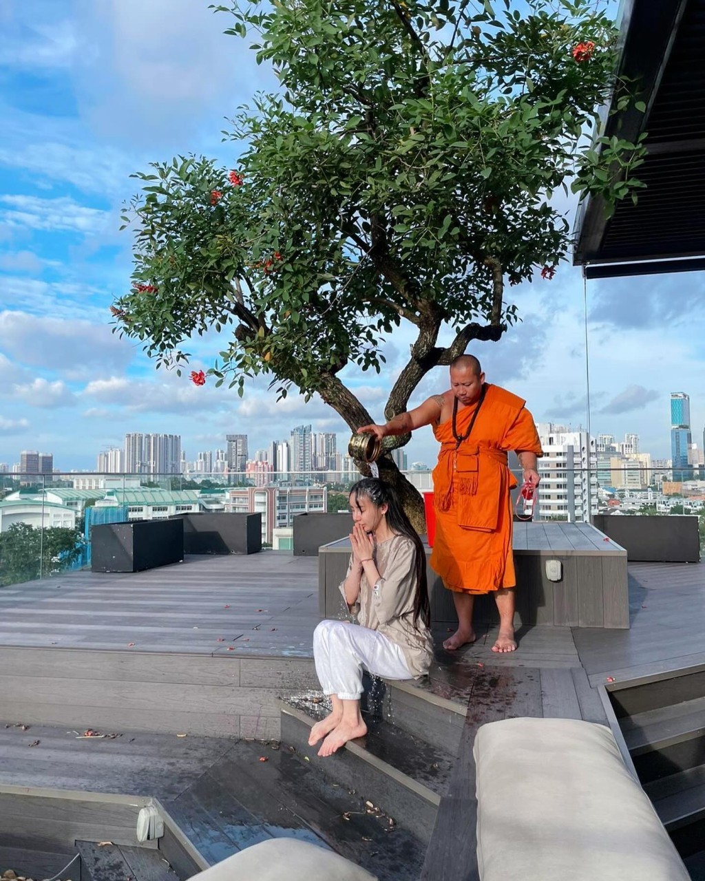 还有几日便踏入2024年,林慧俐提前接受祝福,于前日(23日)在社交网贴出照片,照片中见到泰国高僧到其家中祈福,又到花园平台用水进行冲花凉驱走霉气衰运,迎接新一年来临。