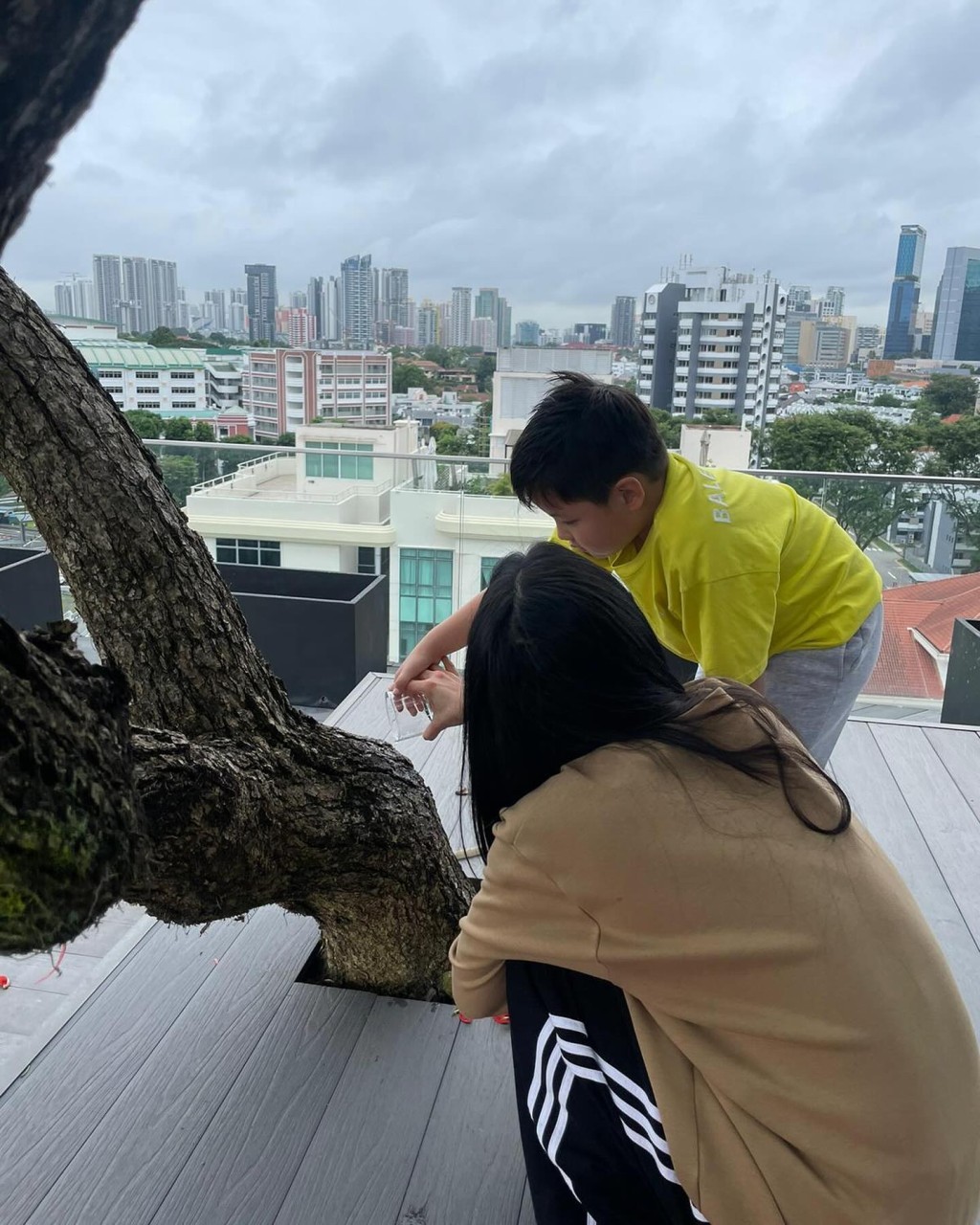 林慧俐除了自己外,她的儿子也一同接受祈福,虽然在近日的寒冷气温下,在室外接受冲花凉仪式,林慧俐非常诚心,换上严实的装束,双手合十,赤脚坐在台阶上虔诚地进行。 儿子也跟妈妈林慧俐一样,表现出真诚一面。 两母子之后将已祈福的水灌入树木中,相信是为家宅平安。