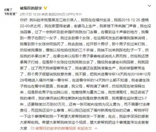 当天晚上在女住户家里的矛盾,到底是怎么发生的?对于赵宇当时的行为认定究竟是见义勇为,还是故意伤害?事情的真相还有待证实。