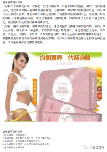 然而舆情观察网也发现,不少产品存在虚假宣传的问题。例如,果蔬代餐粉,某代理宣称该产品可以让人轻松减肥。此外该产品不仅具备一定的保健功能,具有降低血脂、调解血糖及血压的功能,甚至可以能够极大地控制、预防疾病。例如避免癌症、心管疾病、糖尿病和肥胖症,及减少冠心病的发生率。