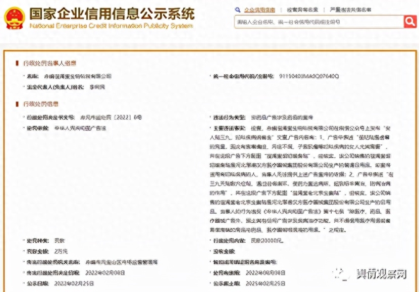 此外,舆情观察网发现,溢涌堂的关联公司,赤峰溢涌堂公司就因为虚假宣传被罚。据悉,该公司微信公众号上发布的文案显示,对溢涌堂御妃暖身贴及贴溢涌堂老北京生姜贴涉及到医疗效果的宣传,违反了《中华人民共和国广告法》的规定,被赤峰市元宝山区市场监督管理局罚款20000元。事后,该文案连同其他内容都被公司删除清空。顺便一提的是,上述产品实际生产商—河北厚德汉方医疗器械集团股份有限公司,曾多次因环保问题遭到处罚。