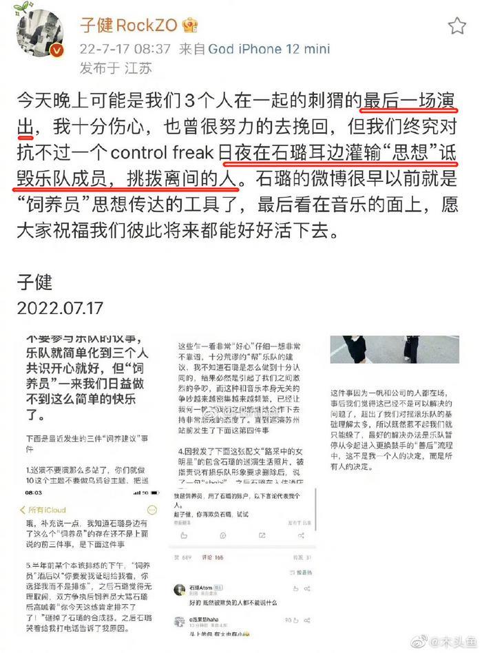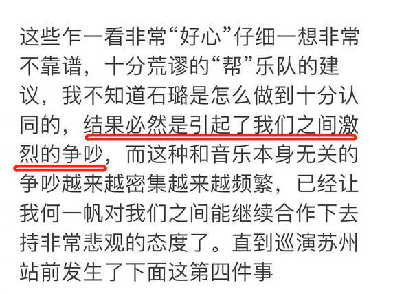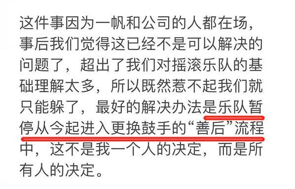 全文没提“解散”二字,但是大家都知道换鼓手,意味着把石璐换走,石璐一走,刺猬就不是原来的刺猬了。