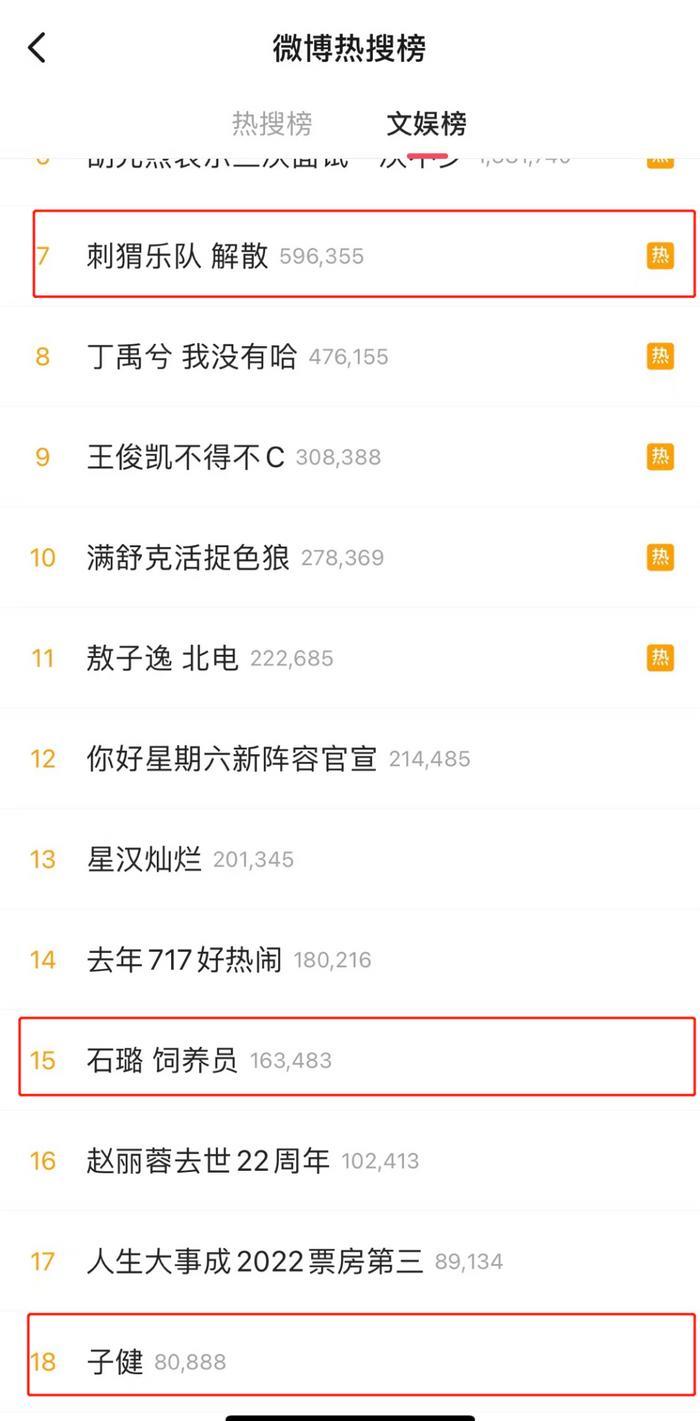 三条热搜围绕的话题只有一个:刺猬乐队解散。