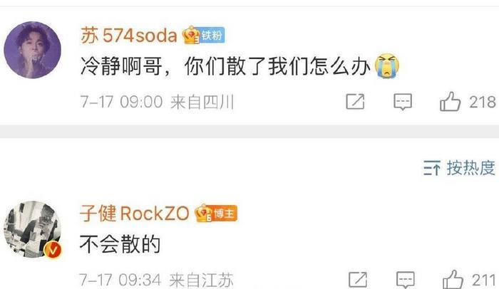 在评论区一片惋惜声中,子健回复乐迷:“不会散的。”