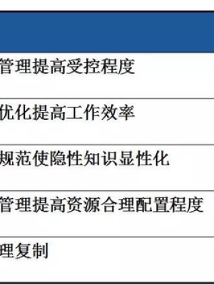 企业流程管理主要是对企业内部改革,改变企业职能管理机构重叠、中间层次多、流程不闭环等,使每个流程可从头至尾由一个职能机构管理,做到机构不重叠、业务不重复,达到缩短流程周期、节约运作资本的作用。