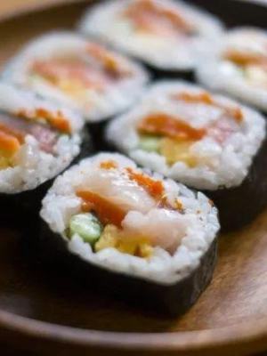 “卷寿司减肥”也是大家非常熟悉的一种。它是将醋饭铺放在海苔上,接着在醋饭上摆放食材,整体卷成筒状,然后切成小段,争鲜寿司怎么吃。另外也可用昆布来替代海苔包裹哦~