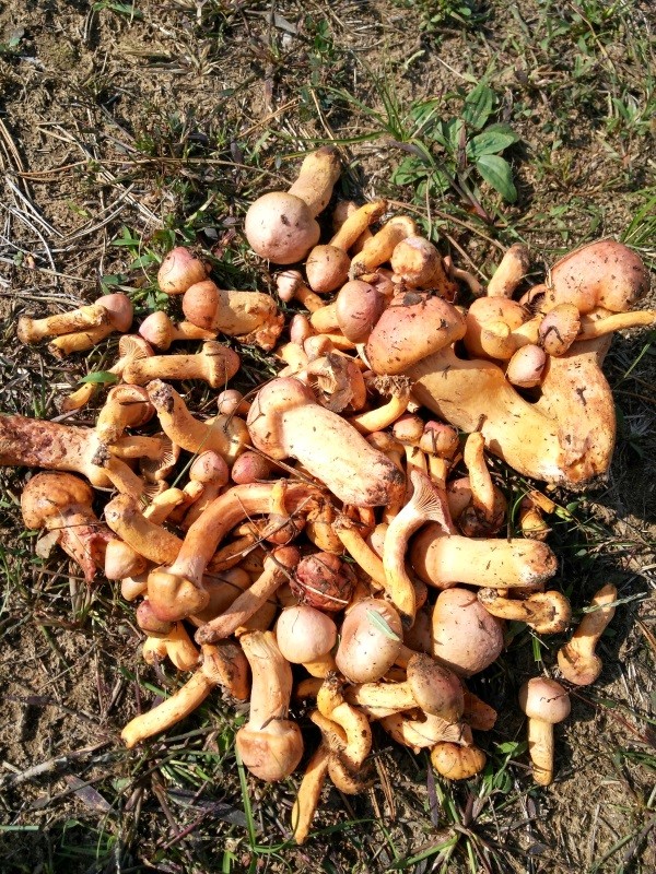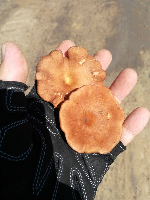 油蘑。也是最常见的一种蘑菇,生长在杨树林中。最多的一次,我曾经看到一辆农用卡车后面的车斗里装了满满一车油蘑。活着时是一种土黄色,跟干的杨树叶接近,采下来后颜色逐渐变深,最后近似于深褐色。新鲜的油蘑做熟带一点酸味,直接晒干后有一种清香味。
