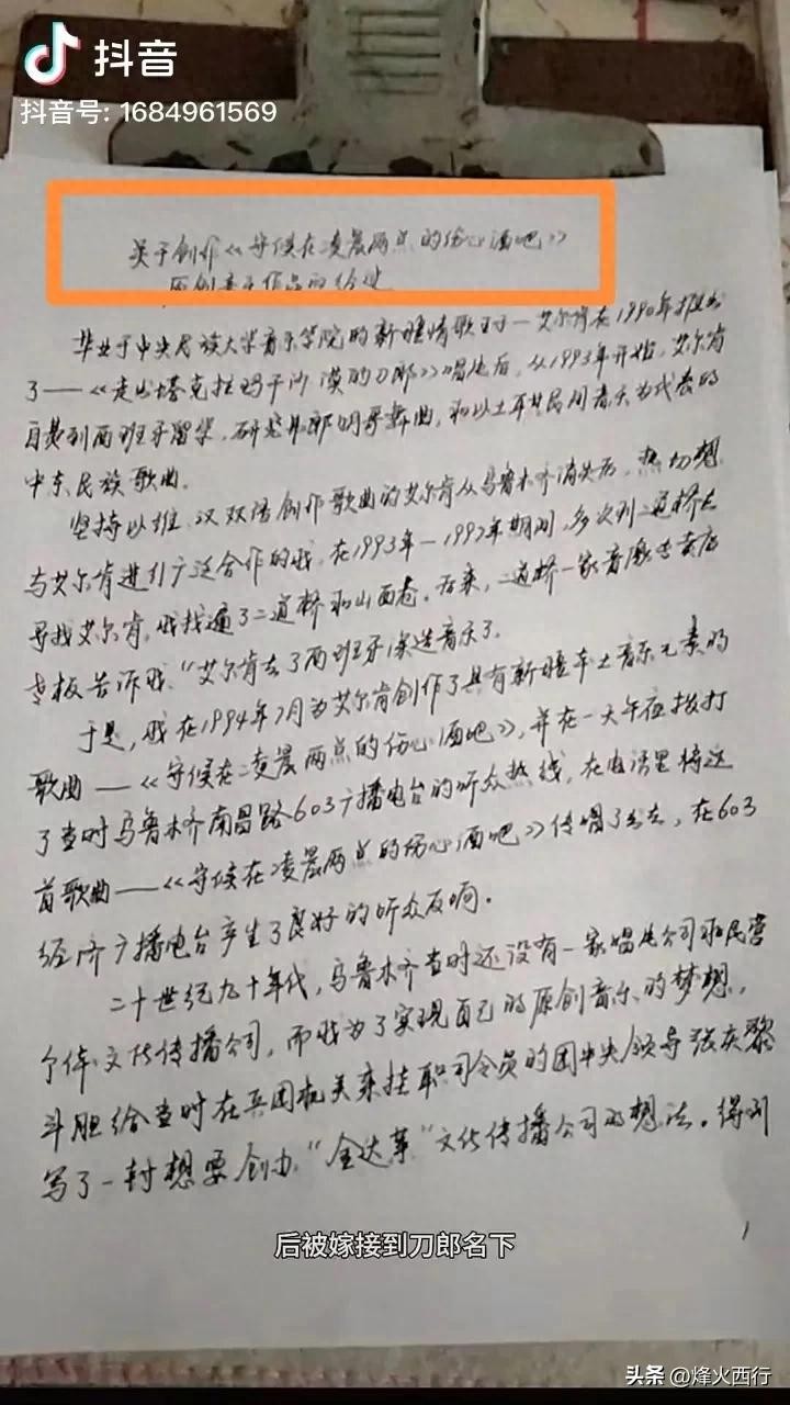 够高明吧?这可不是一个普通人能想出来的精心设计。“于是王金兰在94年7月为艾尔肯创作了这首《伤心酒吧》”这一说法是不是就有了强有力说服力?