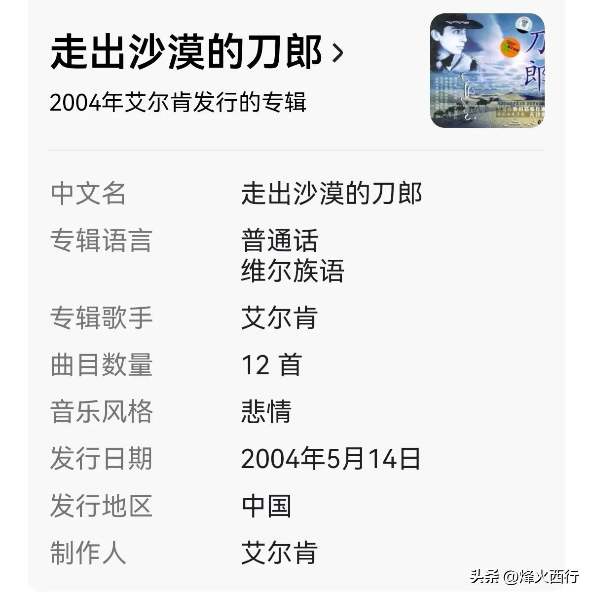 实际上艾尔肯推出专辑《走出沙漠的刀郎》是2004年。