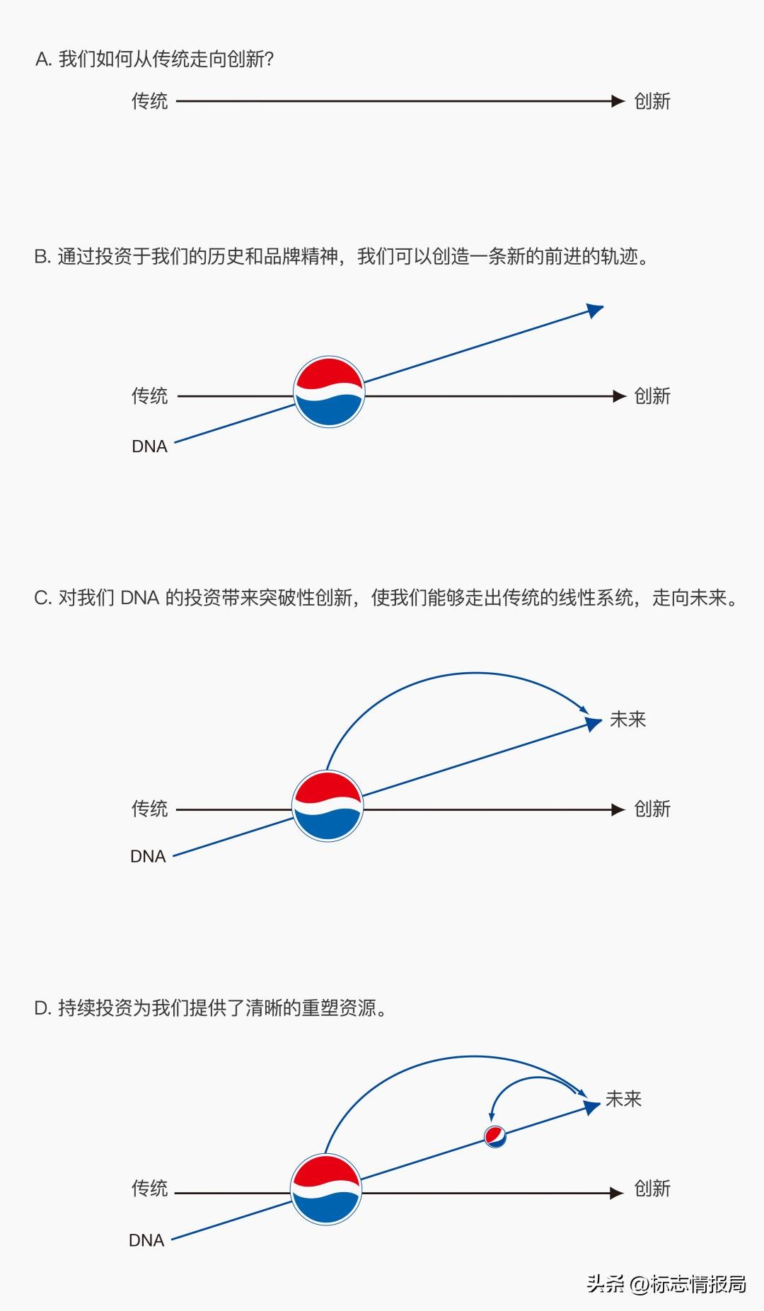 首先,文档介绍了百事可乐新标志是如何从守旧走向创新的。