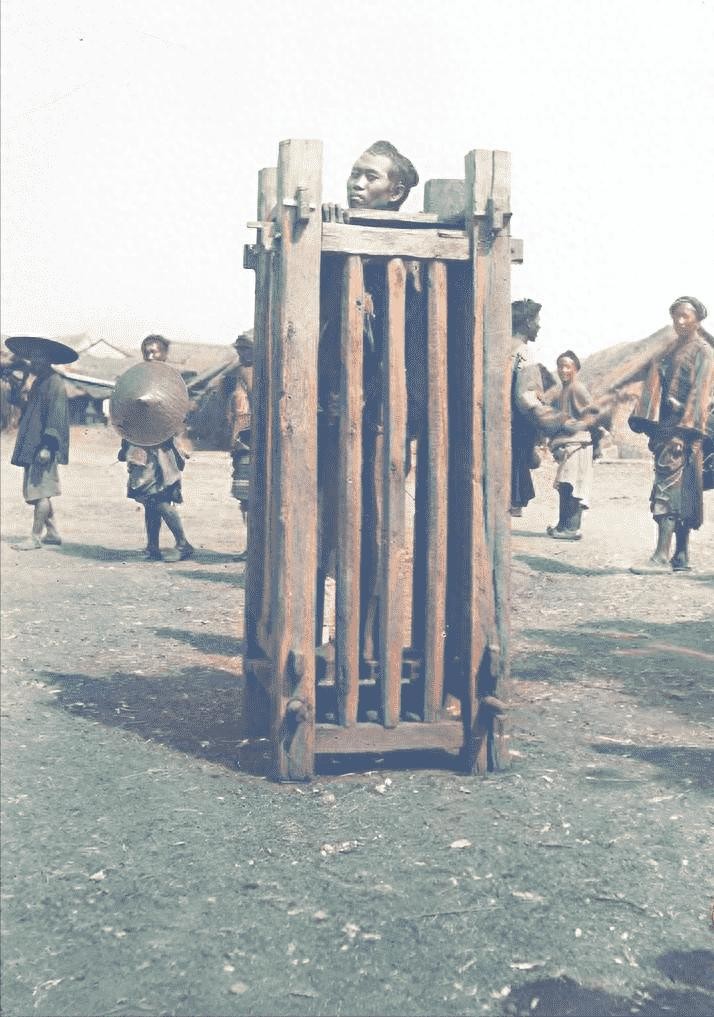晚清残酷刑罚老照片“骑木驴游街的妇女”被当众千刀万剐的死刑犯